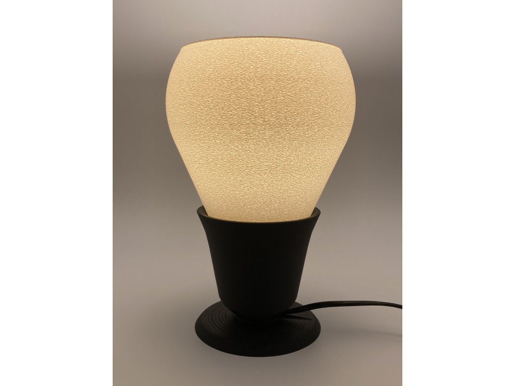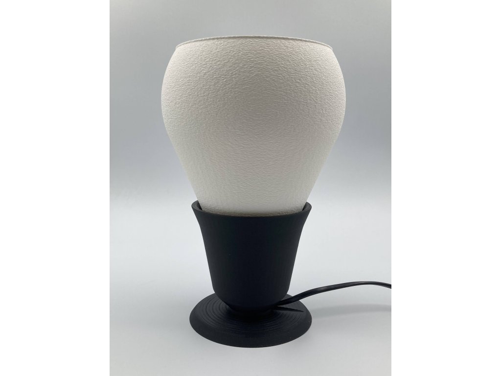 Lampa má elegantný a jemne retro tvar. Vyžaruje z nej moderný minimalizmus s nádychom jemnej estetiky. Skladá sa z dvoch častí - stojana a tienidla. Tienidlo je vytlačené z bieleho materiálu PLA a je k stojanu prichytené pomocou 3 magnetov. Stojan je vytlačený z čierneho PLA. Vzhľadom na použitý materiál je nutné používať LED žiarovky s maximálnym výkonom 4.2W. Objímka má závit E14.