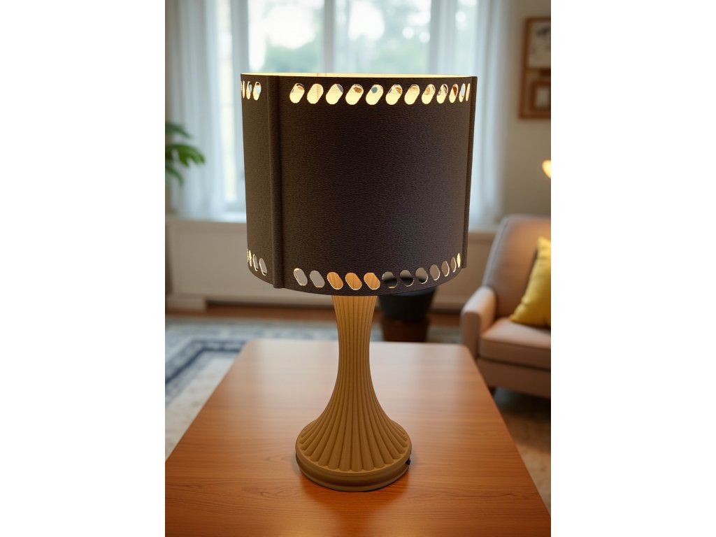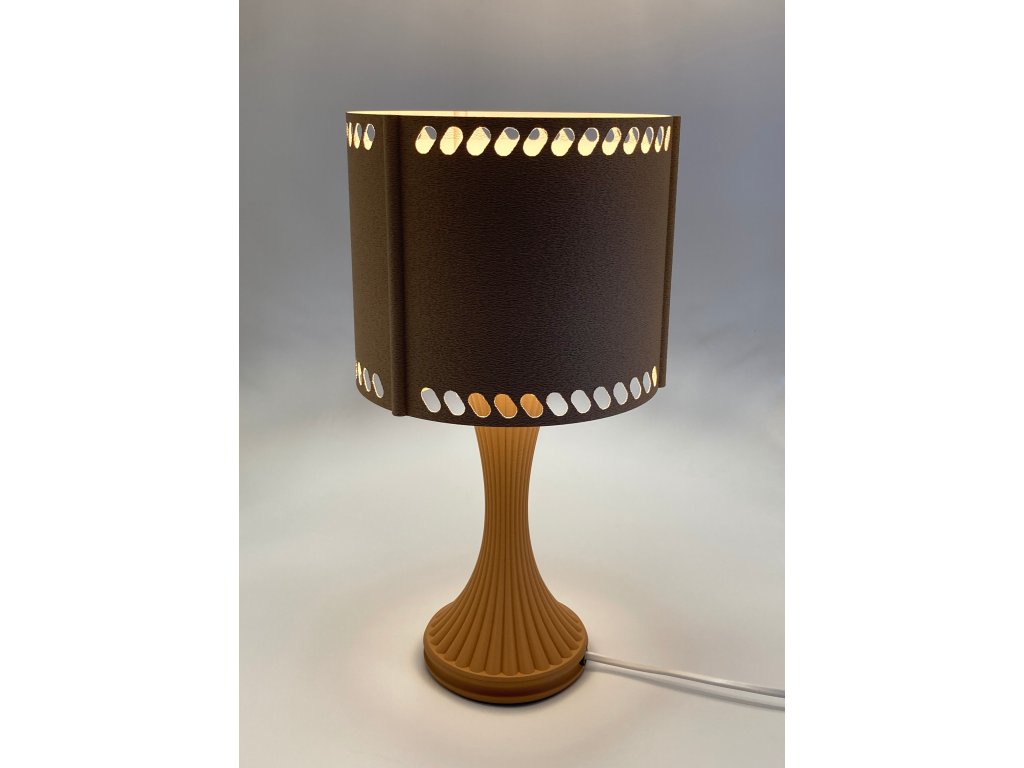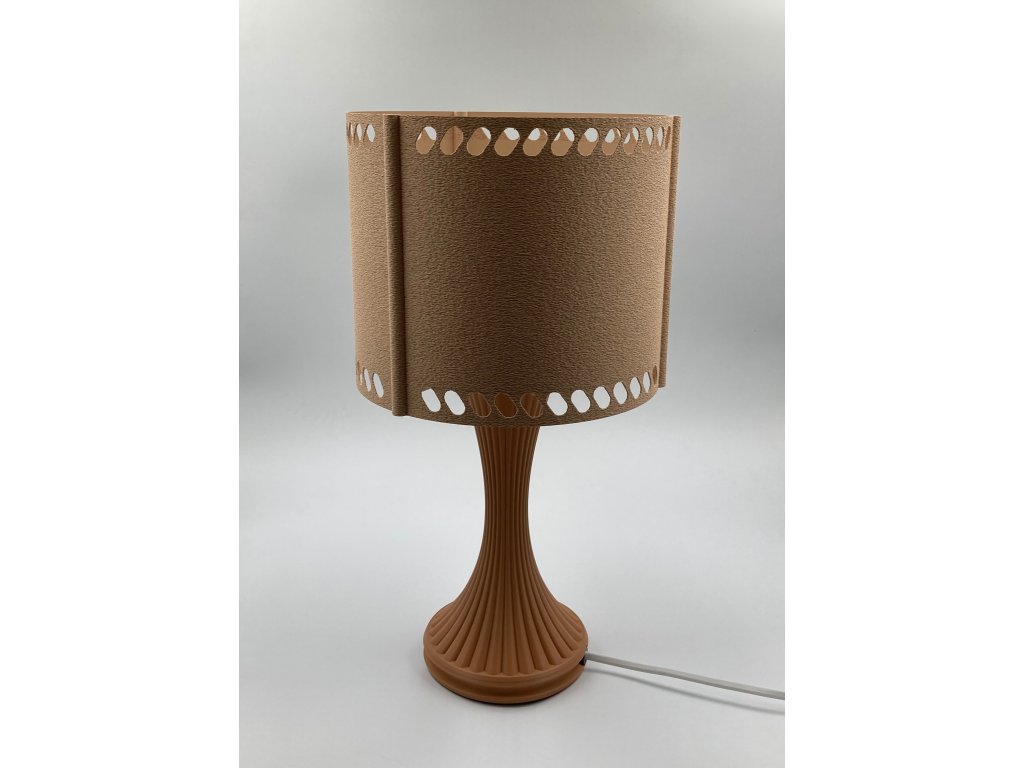 Lampa má elegantný a jemne retro tvar. Je kombináciou klasiky a jemného dekoratívneho detailu. Skladá sa z dvoch častí - stojana a tienidla. Tienidlo je vytlačené z hnedého materiálu PLA a je k stojanu prichytené pomocou 3 magnetov. Stojan je vytlačený z bledohnedého PLA. Vzhľadom na použitý materiál je nutné používať LED žiarovky s maximálnym výkonom 4.2W. Objímka má závit E14.