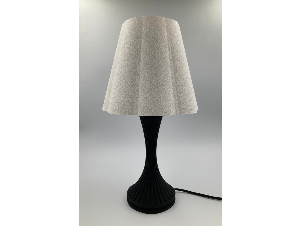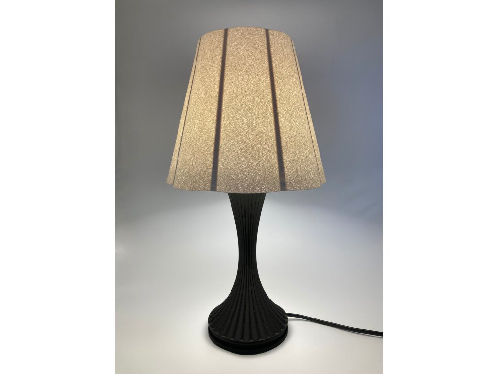 Lampa v retro štýle. Vyžaruje teplé, rozptýlené svetlo. Ideálna pre zútulnenie interiéru. Skladá sa z dvoch častí - stojana a tienidla. Tienidlo je vytlačené z bieleho materiálu PLA a je k stojanu prichytené pomocou 3 magnetov. Stojan je vytlačený z čierneho alebo hnedého PLA. Vzhľadom na použitý materiál je nutné používať LED žiarovky s maximálnym výkonom 4.2W. Objímka má závit E14.