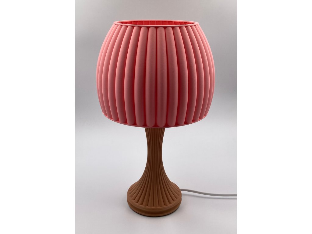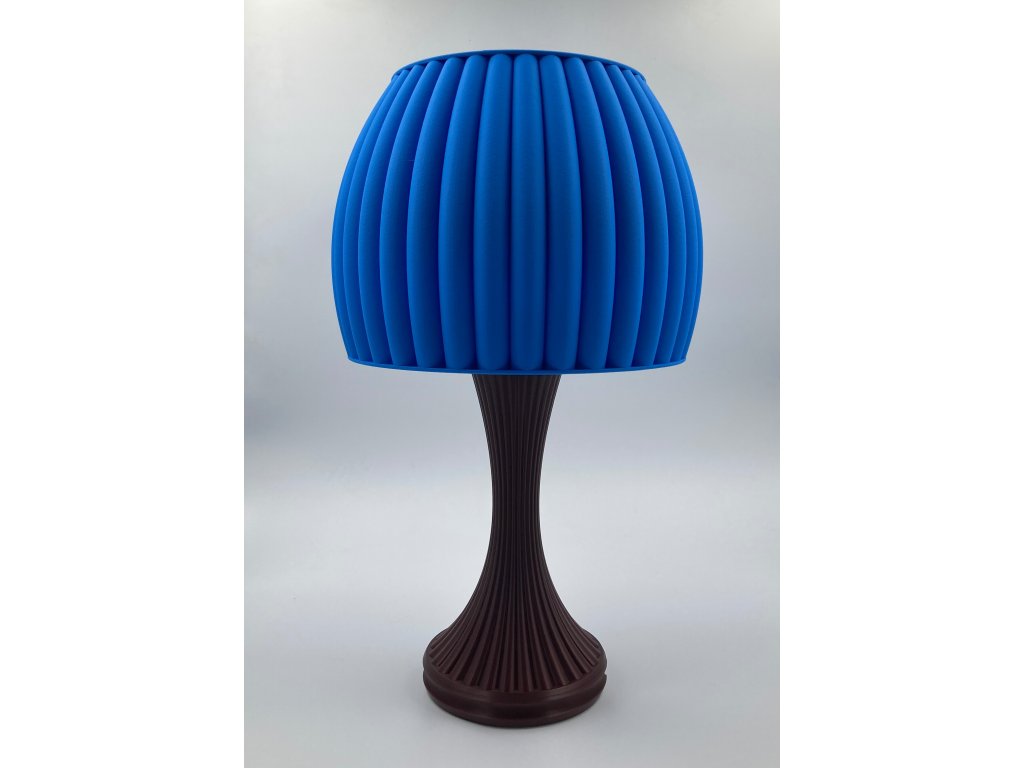 Lampa má elegantný a jemne retro tvar. Skladá sa z dvoch častí - stojana a tienidla. Tienidlo je vytlačené z bieleho materiálu PLA a je k stojanu prichytené pomocou 3 magnetov. Stojan je vytlačený z čierneho PLA. Vzhľadom na použitý materiál je nutné používať LED žiarovky s maximálnym výkonom 4.2W. Objímka má závit E14.